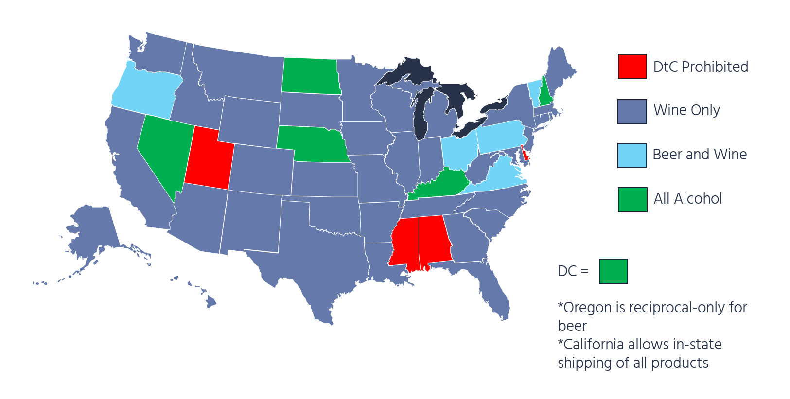 DtC alcohol shipping map