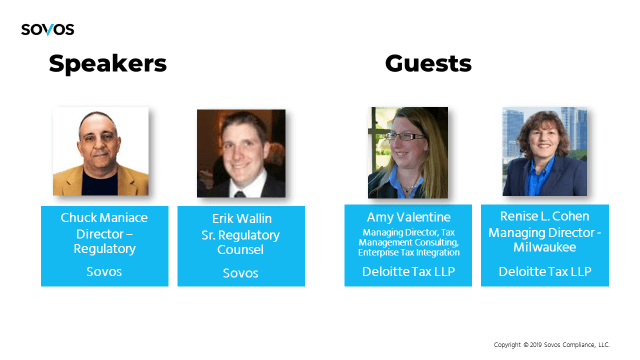 On March 21, Sovos and Deloitte Tax LLP teamed up on a webinar, “The Speed of Sales Tax – How to Stay Ahead of Changing Regulations in 2019,” discussing trends in sales tax compliance that will impact tax professionals’ day-to-day processes and work.