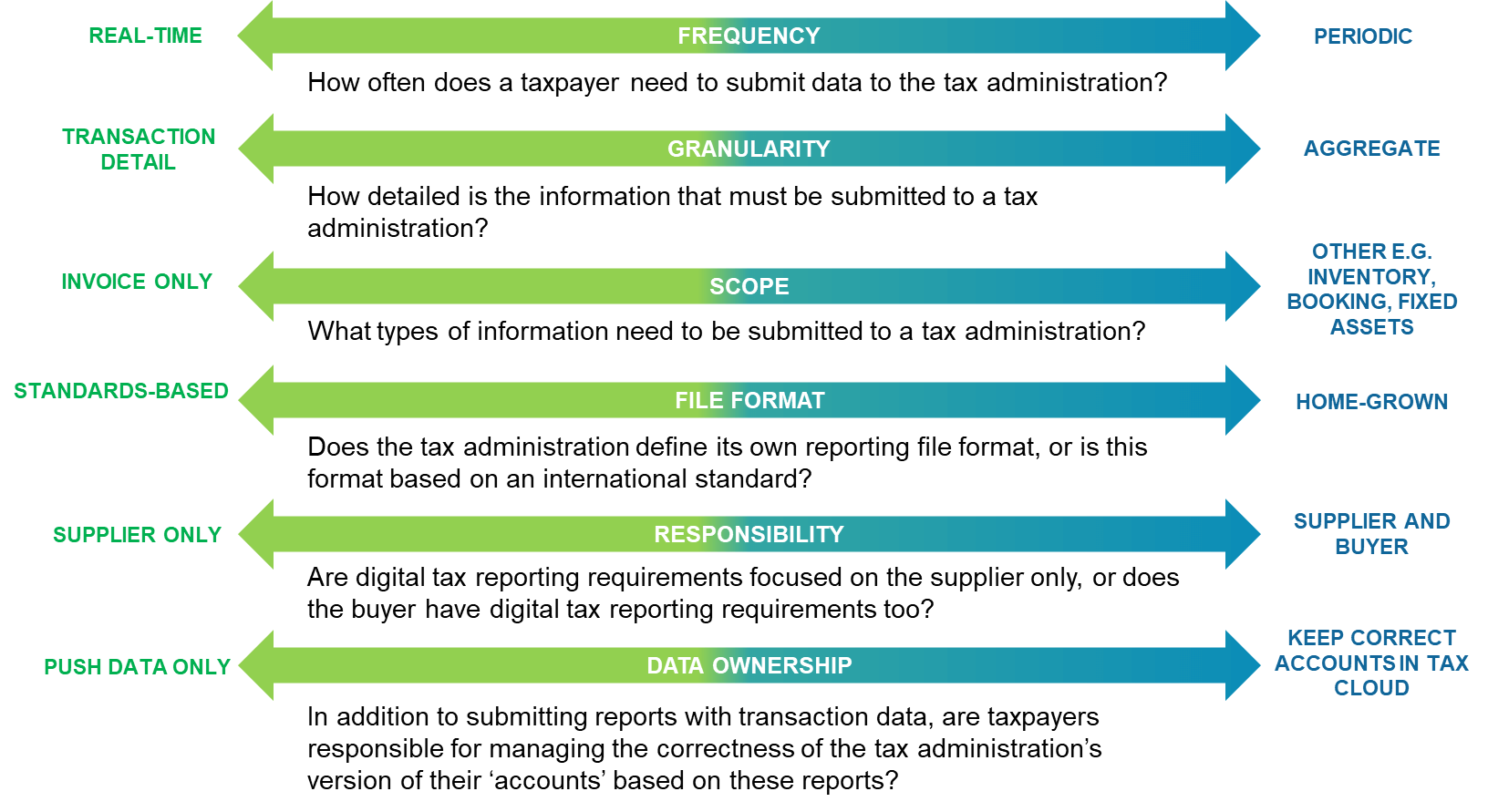 Figure 1 below shows the principal ways in which digital tax reporting regimes can differ among jurisdictions.