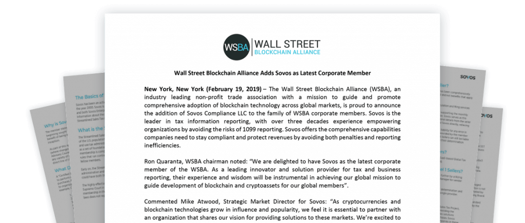 Sovos has joined the Wall Street Blockchain Alliance, an industry leading non-profit trade association with a mission to guide and promote comprehensive adoption of blockchain technology across global markets. Read the press release.