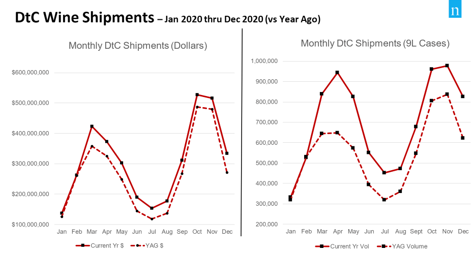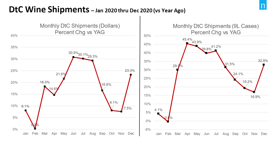- DtC shipments had a rebound in December, with year-over-year growth increasing 23.3% in value and 32.9% in volume.