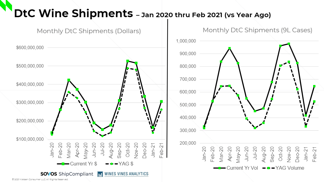 - In February DtC shipments reached $3.7B and 8.4M cases shipped.