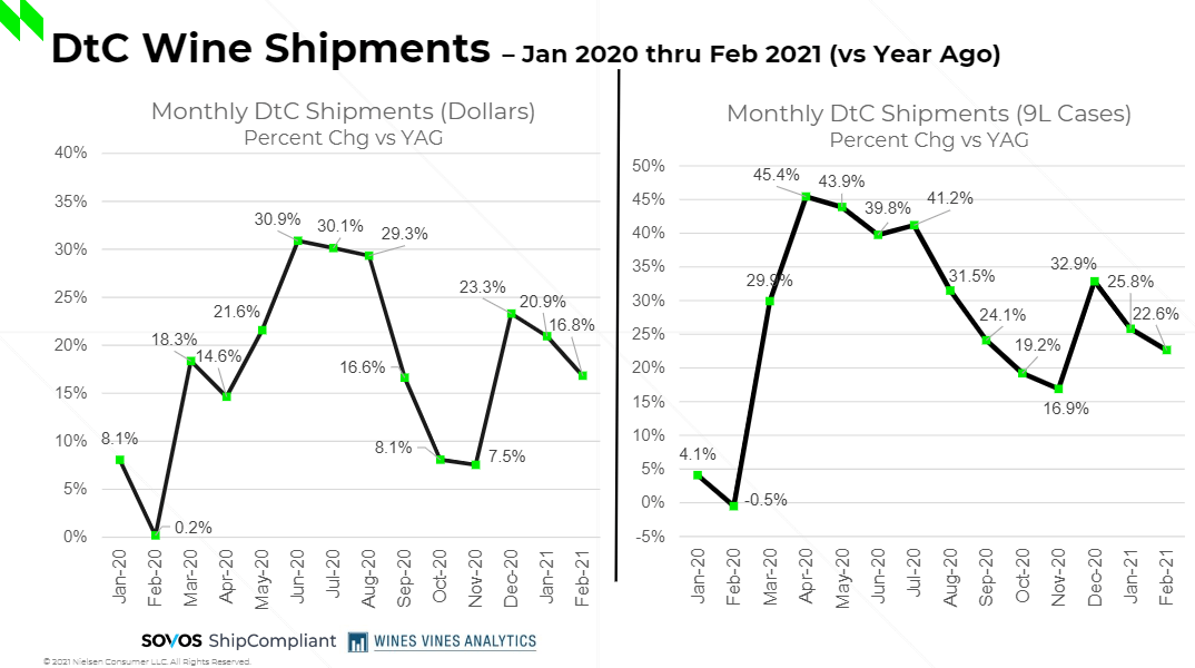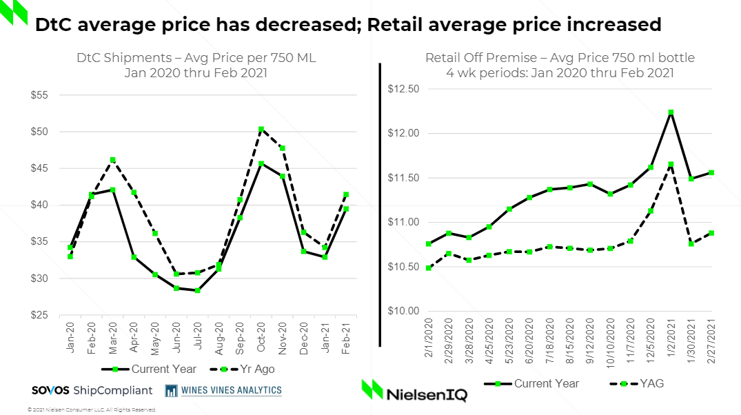 - Average price per bottle shipped DtC was $39.49, almost $2 less than last year.
