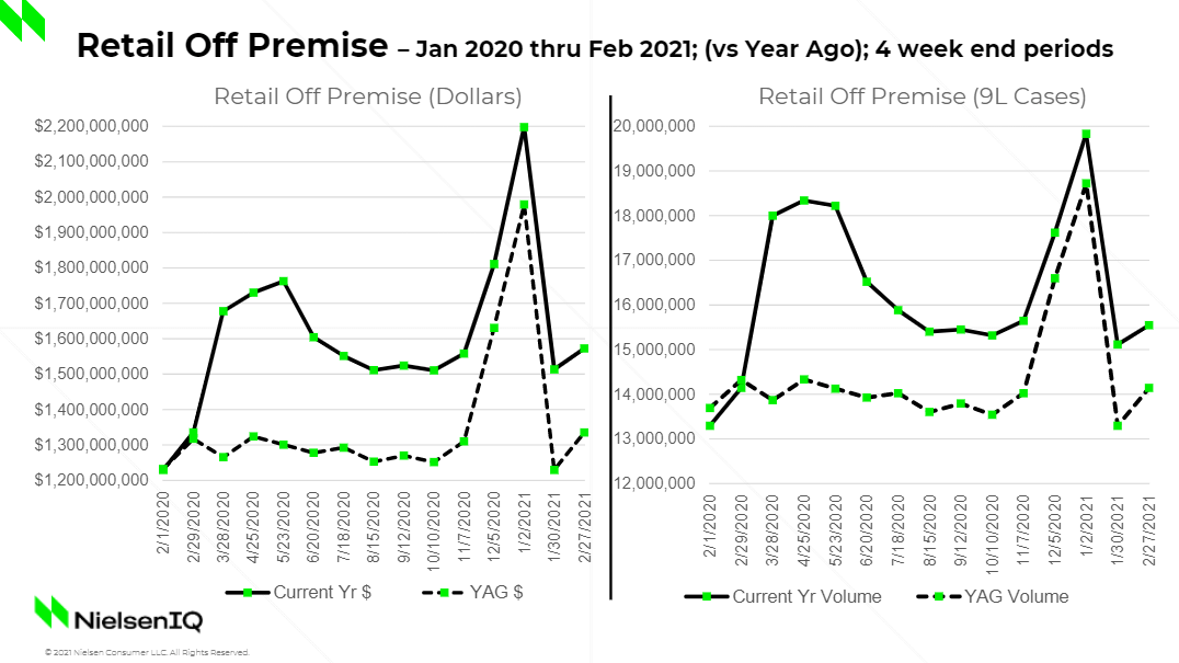- All price tiers above $11 continued to grow rapidly in February, with dollar growth exceeding volume growth, continuing the trend of premiumization.