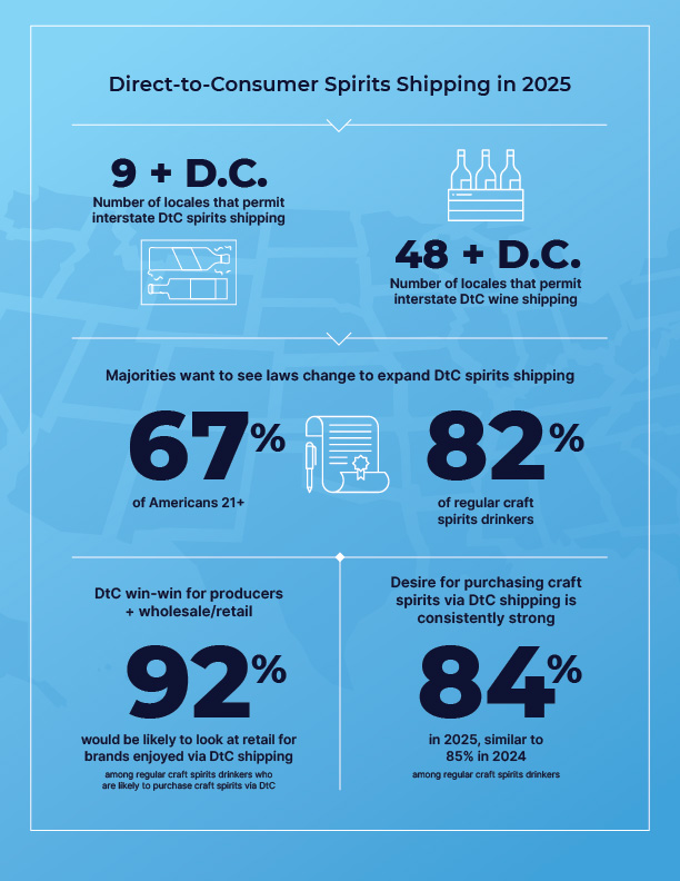 The spirits industry continues to face a pivotal moment. With only nine states and D.C. permitting interstate direct-to-consumer (DtC) spirits shipping (compared to 48 states and D.C. for wine) the gap between consumer expectations and legal access remains stark. The 2025 Direct-to-Consumer Spirits Shipping Report, produced in partnership with the American Craft Spirits Association (ACSA), explores this divide and the growing opportunity to modernize outdated laws.